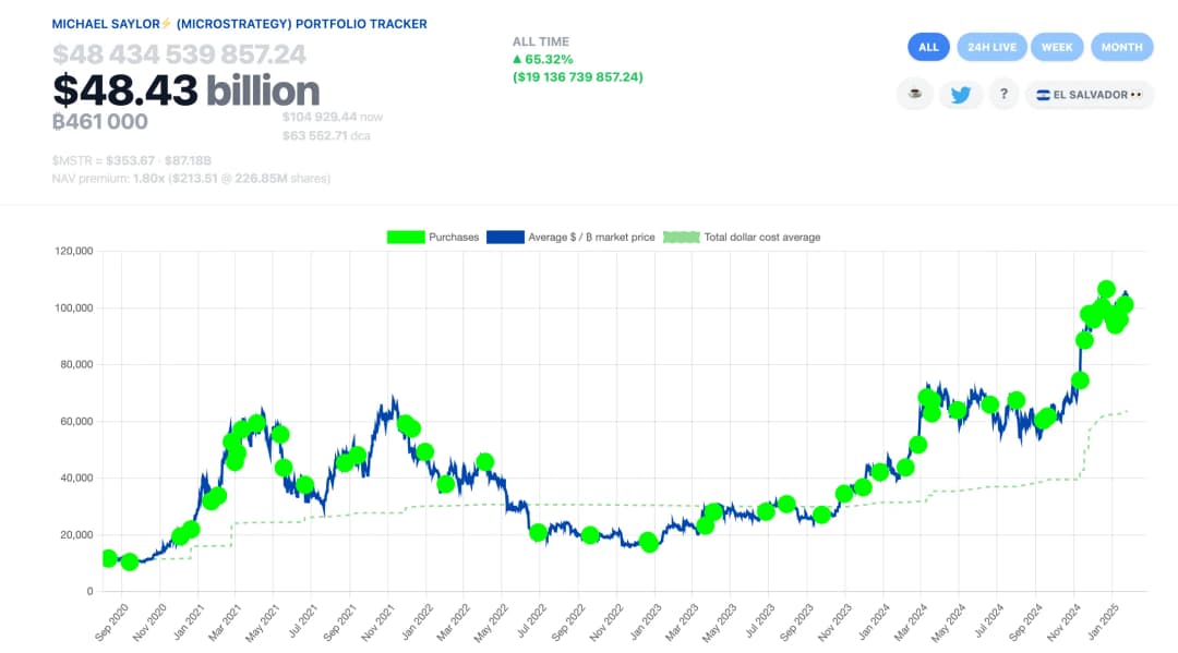 مایکل سیلور، یکی از بنیانگذاران مایکرواستراتژی، برای دوازدهمین هفته متوالی شاخص قیمت بیت کوین (BTC) را منتشر کرد و از خرید قریبالوقوع بیت کوین در 27 ژانویه خبر داد. آخرین خرید این شرکت در 21 ژانویه و به تعداد 11,000 بیت کوین با میانگین قیمت 101,191دلار برای هر کوین انجام شد.