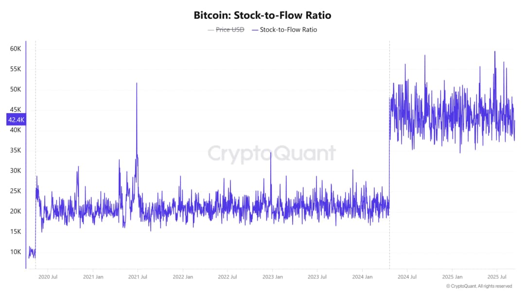 نسبت Stock-to-Flow (S2F) بیش از 11% جهش کرده و به 708هزار رسیده است که روایت کمبود بیت کوین را تقویت میکند.