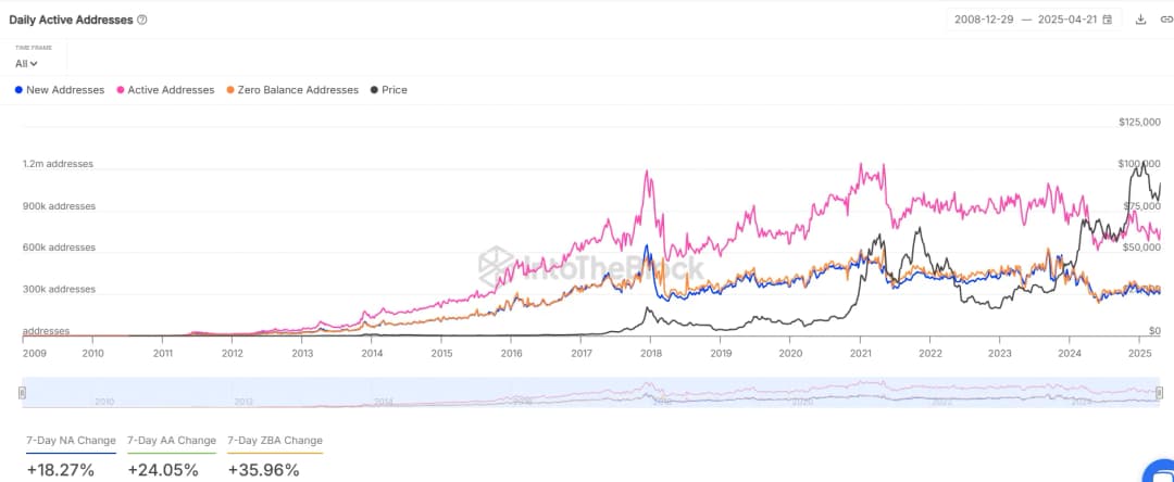 در میان خروجهای عظیم، دادههای زنجیرهای افزایش فعالیت نهنگها و خردهفروشها را نشان میدهد. تراکنشهایی با ارزش بین 1 تا 10 میلیون دلار بیش از 0٪ افزایش یافتهاند و تراکنشهایی که بیش از 10 میلیون دلار بودهاند، 43٪ رشدی داشتهاند؛ این امر بیانگر تغییر موقعیت فعال بازیگران اصلی است. علاوه بر این، تعداد آدرسهای فعال روزانه در هفته گذشته بیش از 24٪ افزایش یافته است که نشان دهنده تعامل قویتر شبکه میباشد. اگرچه افزایش فعالیت ممکن استاحساسات صعودی ایجاد کند، ولی اغلب در دورههای عدم اطمینان نشانگر شرایط نوسانی است. افزایش تراکنشهای نهنگ ها و مشارکت خردهفروشان، بازار را به فضایی شکننده و غیر قابل پیشبینی بدل کرده است.