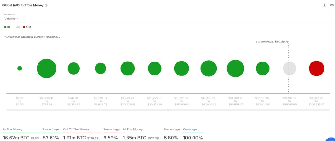 در زمان انتشار این مقاله، قیمت بیت کوین 94٬277.74 دلار بود که در 24 ساعت گذشته 0.50٪ کاهش داشته است. در حالی که بازار این حرکات را جذب میکند، نگاهها اکنون به رفتار زنجیرهای گستردهتر و احساسات موجود در معاملات جهت حرکت تصمیمگیرنده بعدی معطوف شده است.