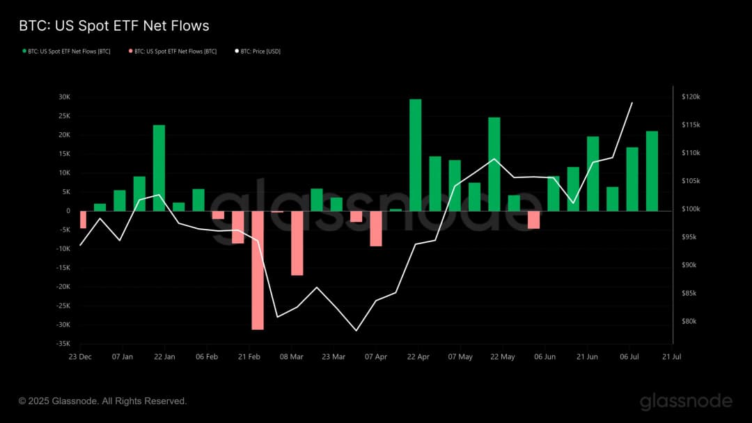 به عبارت دیگر، فشار فروش با عبور بیت کوین از 120هزار دلار، چهار برابر شده است. با این حال، در همین بازه، صندوقهای ETF بیت کوین با ورود سرمایه قابل توجهی مواجه بودند، اما نتوانستند به طور کامل این حجم فروش را جذب کنند. به طور مثال، ETFها حدود 21هزار بیت کوین خریدند و شرکتهای خزانهداری بیت کوین نیز تقریبا 5 هزار سکه کسب کردند.