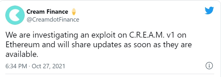 پروتکل مالی غیرمتمرکز وامدهی کریم فایننس (Cream Finance) در روز چهارشنبه 27 اکتبر هک شد و هکر بیش از 130 میلیون دلار توکن را از طریق یک حمله وام فلش به سرقت برد. قیمت کریم فایننس پس از این هک بیش از 20 درصد سقوط کرد و تا سطح 95 دلار کاهش یافت. در زمان انتشار این مطلب قیمت آن در حدود سطح 112 دلار بود.